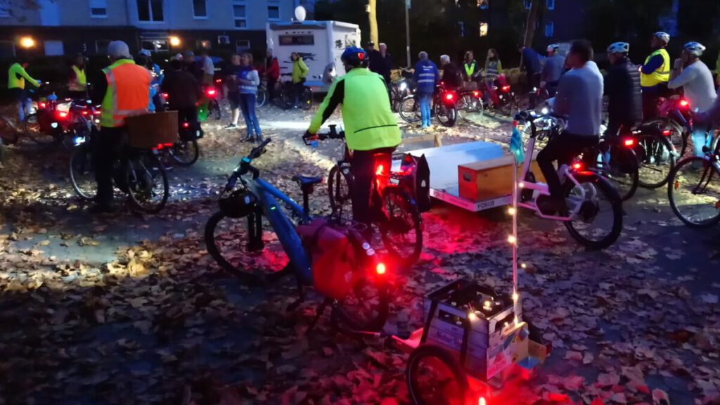 Am 28. No­vem­ber 2025 ist es wie­der so­weit: Un­se­re Lich­ter-Fahrt soll et­was Licht ins Dun­kel brin­gen, denn nicht nur die Jah­res­zeit er­for­dert Licht am Fahr­rad, wir möch­ten auch ein Zei­chen set­zen für si­che­re und ein­fa­che Rad­we­ge in Ib­ben­bü­ren. Vie­le un­se­rer Vor­schlä­ge und An­trä­ge wer­den im Rat­haus nicht wei­ter be­ar­bei­tet und mit der Demo möch­ten wir auch mehr Licht in die Ar­beit der Ver­wal­tung tra­gen.