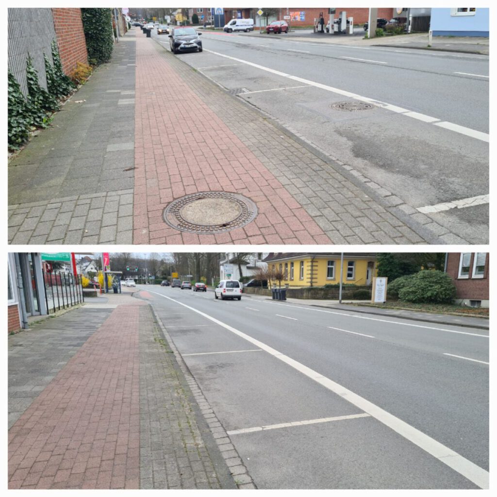 Der ur­sprüng­lich schon für 2024 ge­plan­te, dann auf 2025 ver­scho­be­ne Bau ei­ner gu­ten Rad- und Fuß­ver­kehrs­in­fra­struk­tur auf der Os­na­brü­cker Stra­ße Rich­tung Bock­ra­den wird jetzt frü­hes­tens im Jahr 2027 ge­baut wer­den.