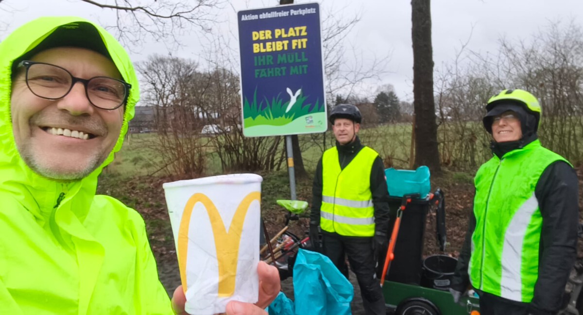 Am Ende waren zwei Mülltonnen voll mit Flaschen, Tüten, Verpackungen… überwiegend von den nahgelegenen Fastfood-Restaurants.